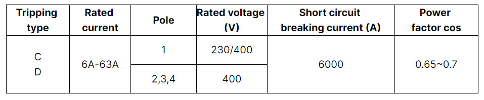 Miniaturowy wyłącznik CFB2S-63 jest odpowiednia do przeciążenia i ochrony przed zwarciami systemów dystrybucji oświetlenia lub układów dystrybucji silników w klatce wiewiórczej z AC 50 Hz, napięciem znamionowym 400 V i poniżej oraz prądu znamionowego do 63A. Może być również stosowany do rzadkiej konwersji operacji linii w normalnych warunkach. Ten wyłącznik jest odpowiedni do obszarów przemysłowych, komercyjnych, wieżowców i mieszkalnych. Produkt spełnia następujące standardy: IEC60898-1 、 GB10963.1.