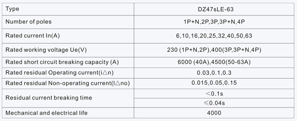 DZ47SLE-63 Seria Earth Circuit Circuit jest odpowiednia do obwodu AC 50 Hz/60 Hz z napięciem znamionowym do 400 V i prądu znamionowego do 63A. Może natychmiast odciąć wadliwy zasilanie, aby chronić bezpieczeństwo osobiste i sprzęt elektryczny z okazji osobistego porażenia elektrycznego lub prądu upływu poza wartością znamionową. Może również chronić obwód i przeciążenie lub zwarcie elektromotoru, używane do rzadkiej zmiany i uruchamiania w obwodzie.